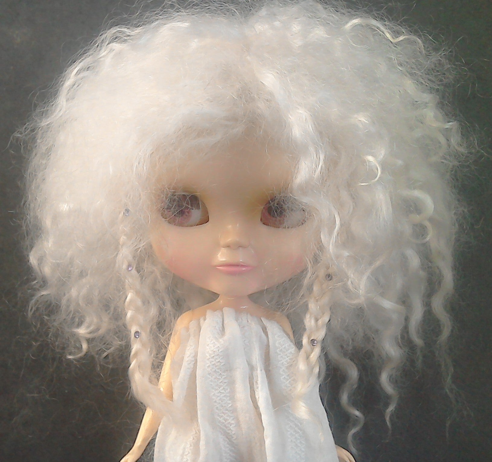 Made from our own herd of Angora goats, this wig features soft mohair wefts sewn onto cloth caps that can stretch to fit a variety of dolls. Available in sizes 4" to 14", Pictured is a 10 inch wig is perfect for Blythe Dolls