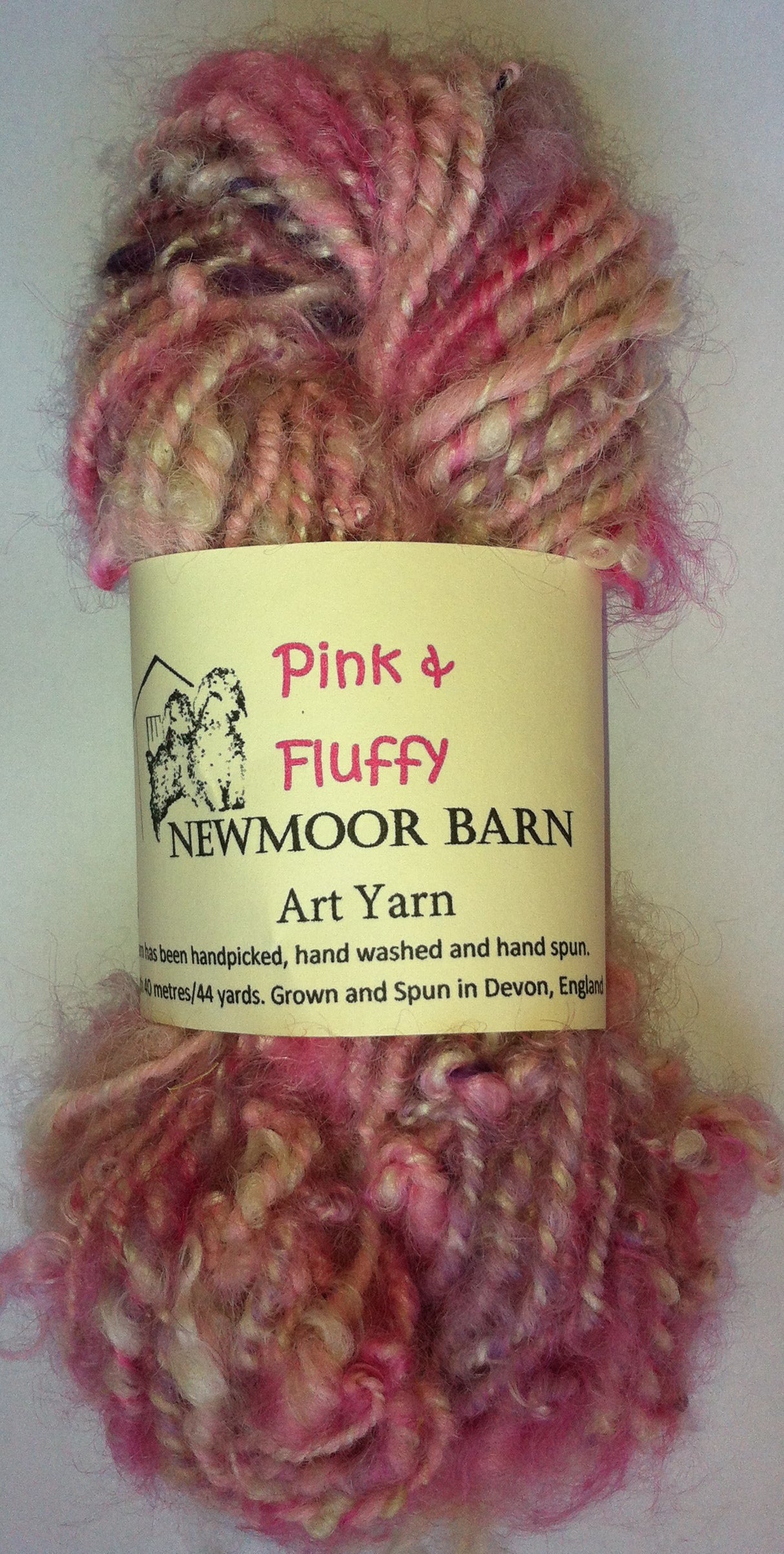 A mixture of pinks are used to create our hand spun Pink and fluffy Yarn. The mohair used is from our own herd of Angora Goats giving very soft with a wonderful locks and the Alpaca is sourced from a local farm. Approx.
