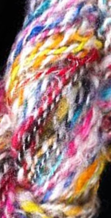 Add a pop of color to your projects with our Roughly Spun Mohair Brights Yarn! Each strand contains a mix of vibrant hues, while the rough spinning technique showcases the beautiful locks when knitted or woven. Plus, it's incredibly soft and the locks become even more prominent after washing. Have fun creating with this playful and quirky yarn!