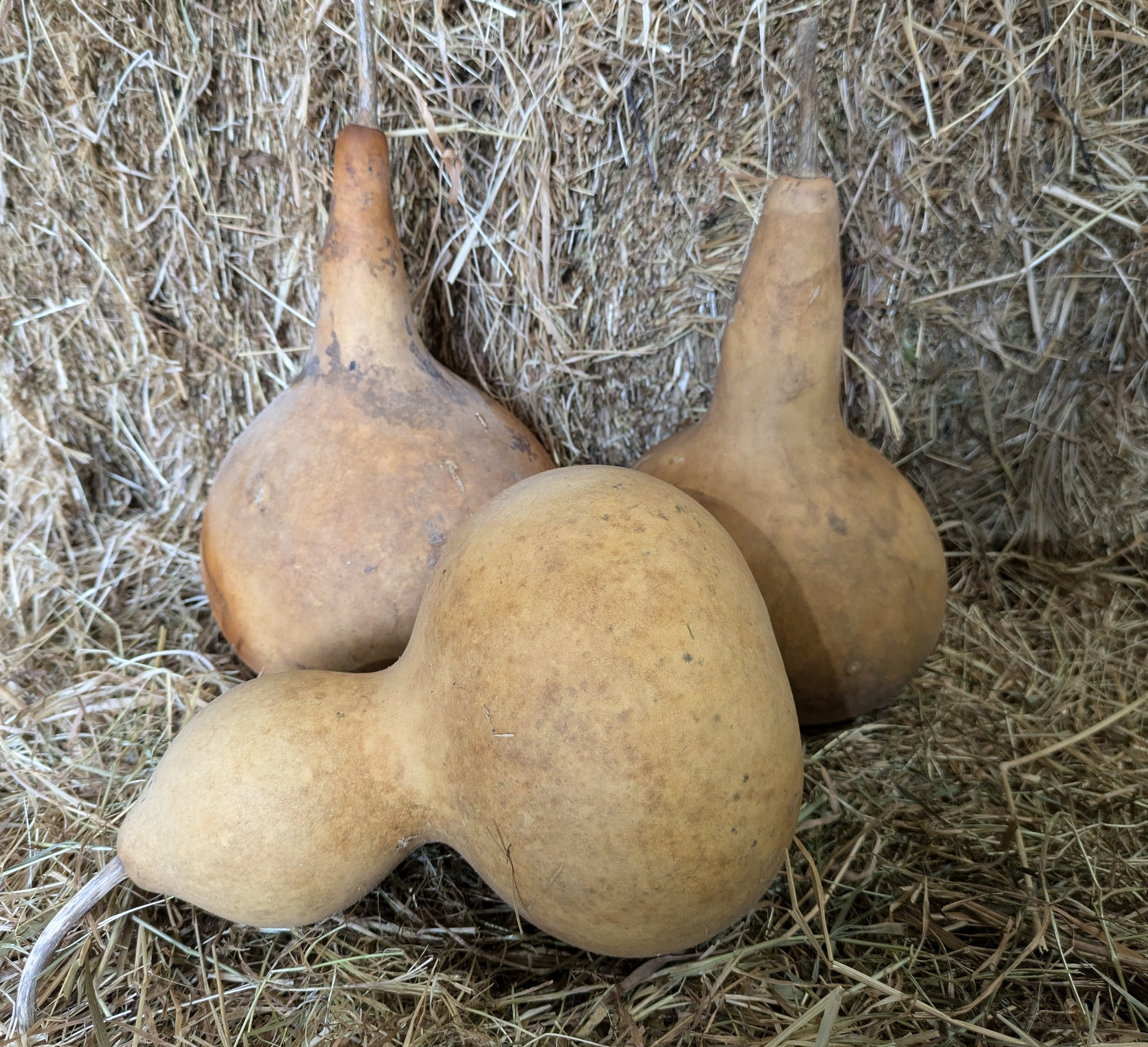 Get creative with our organic gourds grown on our small farm! Each set of 3 dried and washed gourds is unique, with varying shapes and sizes. Use them to decorate any space, adding a touch of nature and sustainability. No two are the same!
