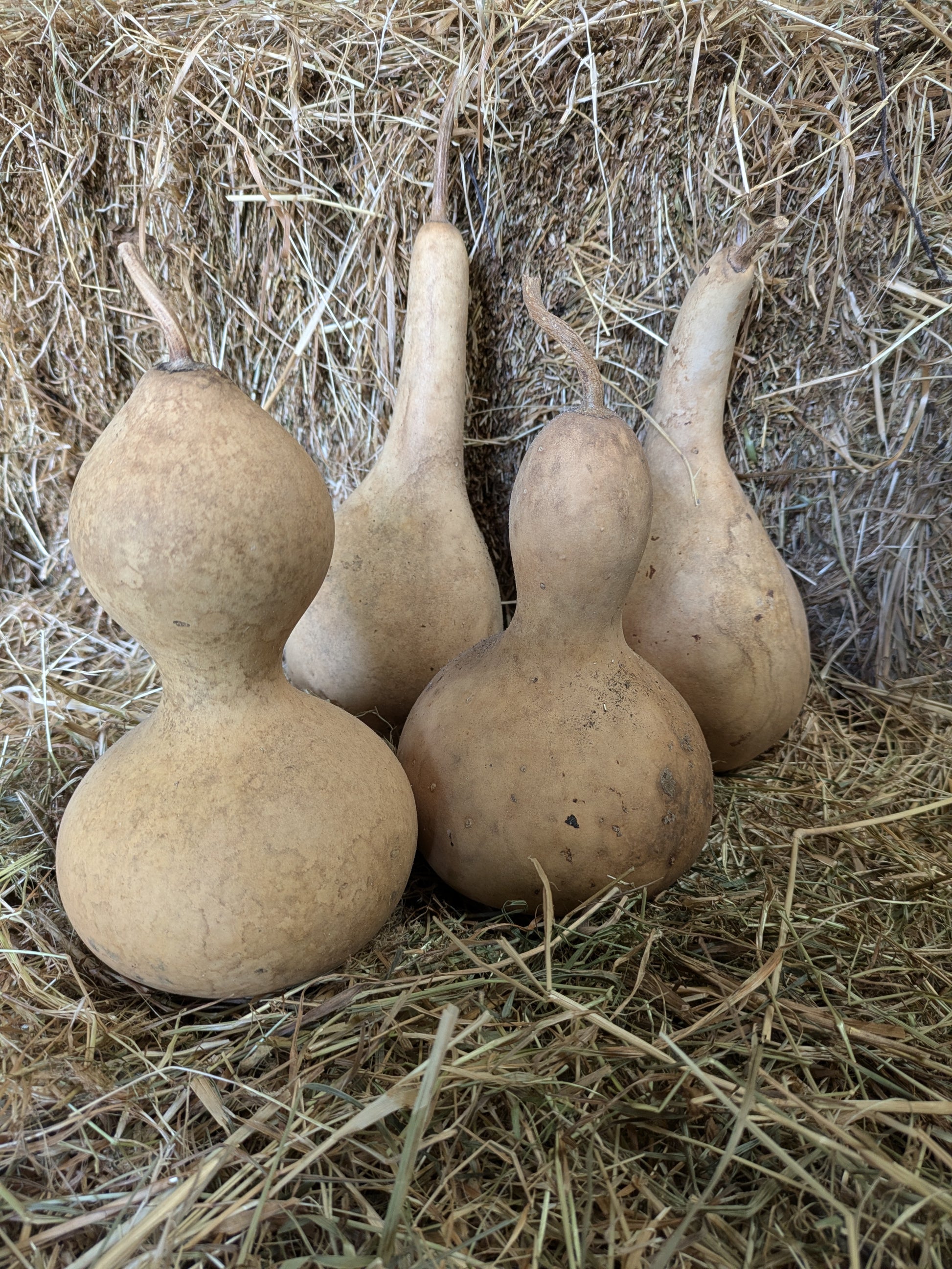 Each gourd has an average height of 21cm (8 inches) and a diameter of 11 - 15cm (4- 6 inches) at the widest part.