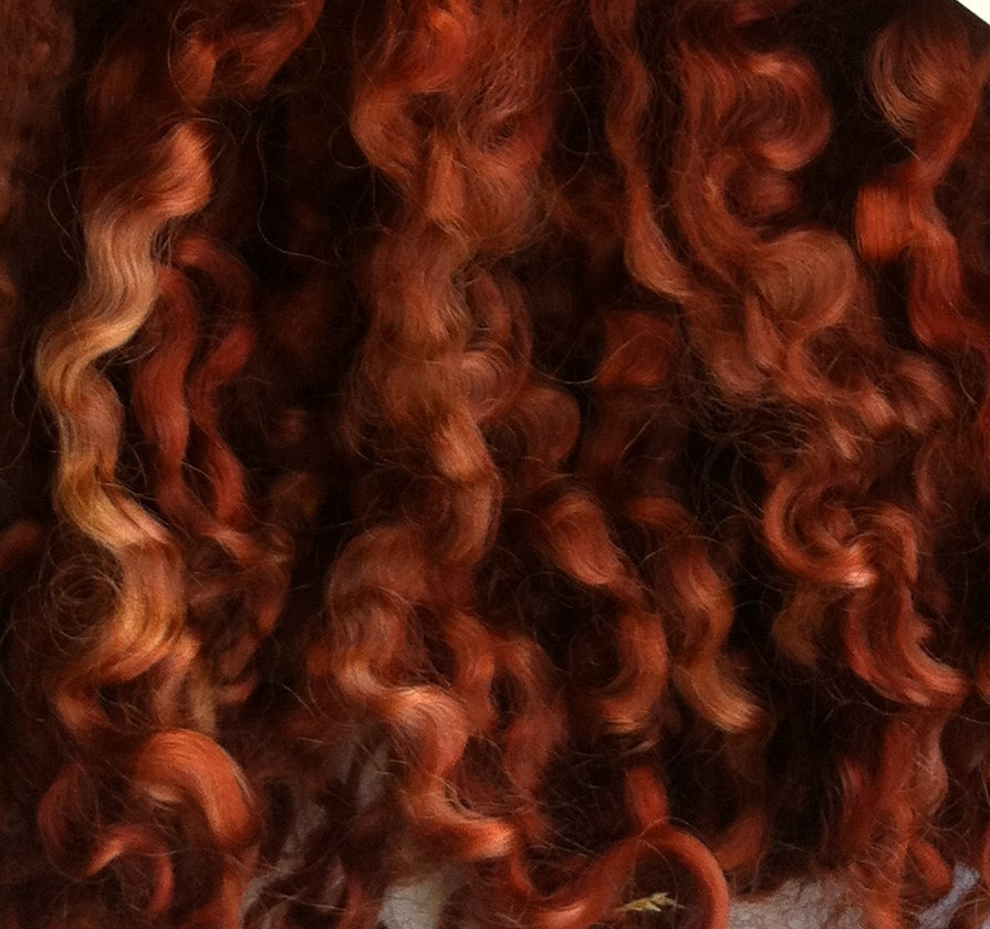 Give your doll's hair a makeover with our delightful hand-dyed Teeswater Locks in Burnt Tan. These luscious and long strands have a gorgeous sheen, giving your doll a fabulous and sturdy mane.