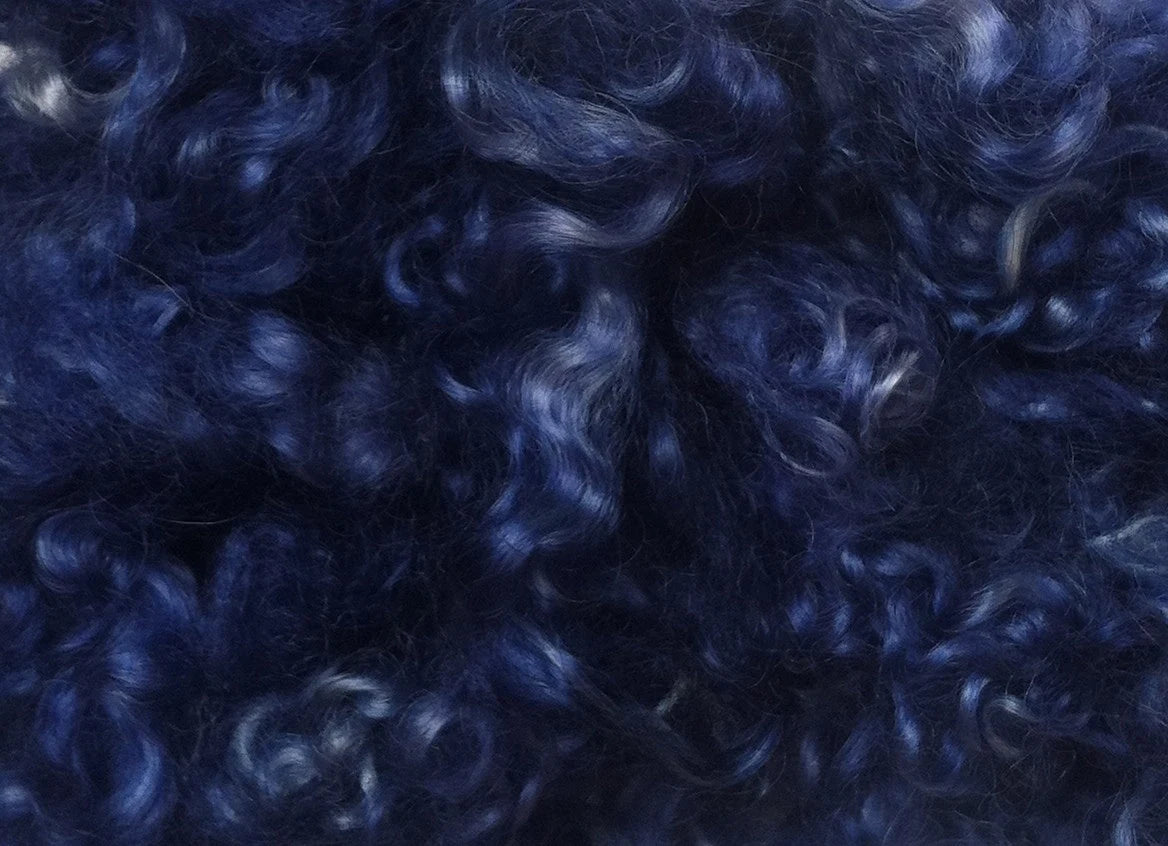 Our Teeswater wool is superb, with long, shiny strands. The loose fibre is washed and dyed, with lengths from 5" to 9" (12 - 23cm). Perfect for separating for doll hair, it's great for beginners to spin and creates a glossy and durable yarn, making it ideal for all sorts of creative projects.
