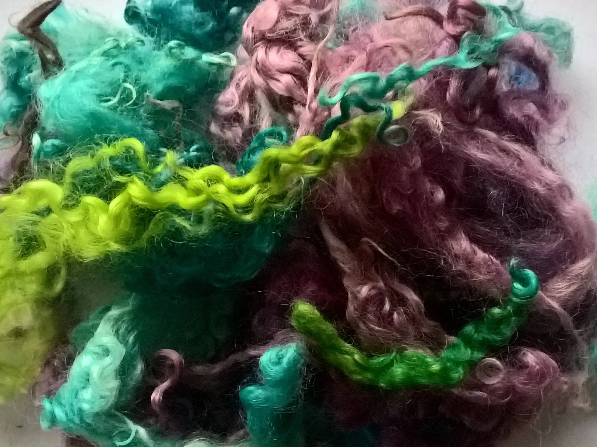 Our Teeswater wool is superb, with long, shiny strands. The loose fibre is washed and dyed, with lengths from 5" to 9" (12 - 23cm). Perfect for separating for doll hair, it's great for beginners to spin and creates a glossy and durable yarn, making it ideal for all sorts of creative projects.