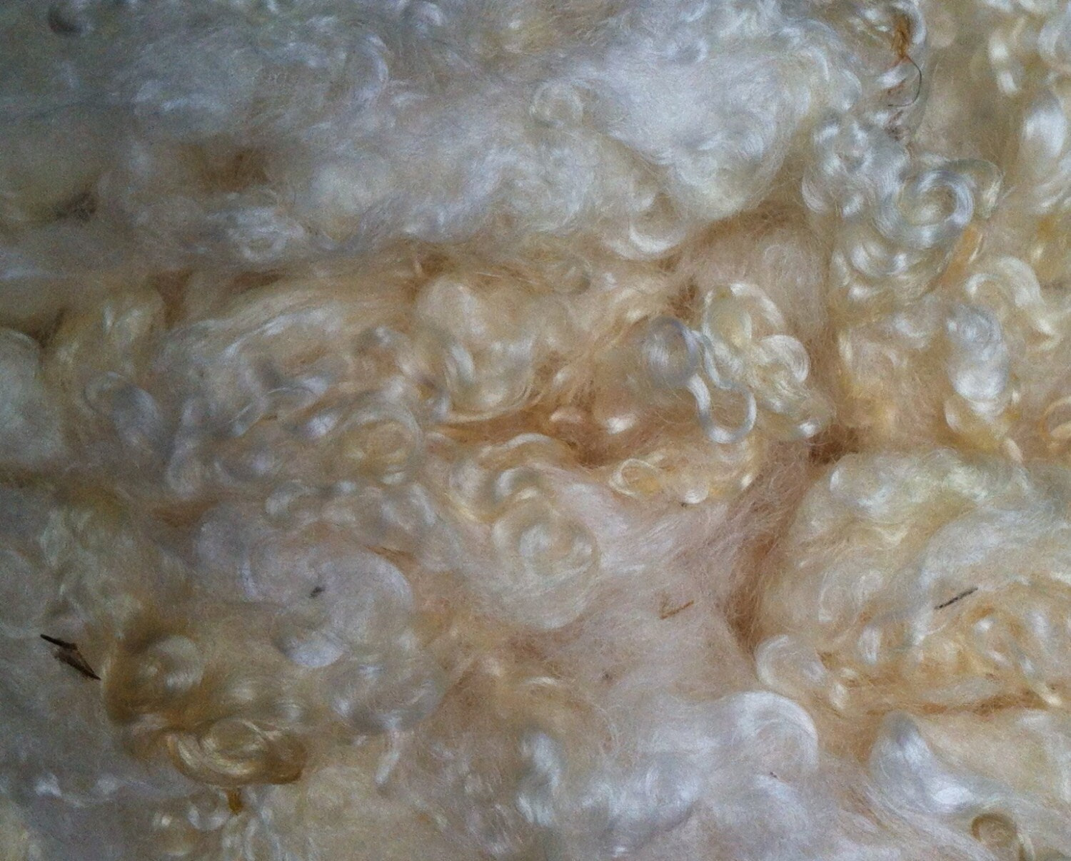 Our Teeswater wool is superb, with long, shiny strands. The loose fibre is available left Raw (Unwashed) or washed and dried, with lengths from 5" to 9" (12 - 23cm). Perfect for separating for doll hair, it's great for beginners to spin and creates a glossy and durable yarn, making it ideal for all sorts of creative projects.
